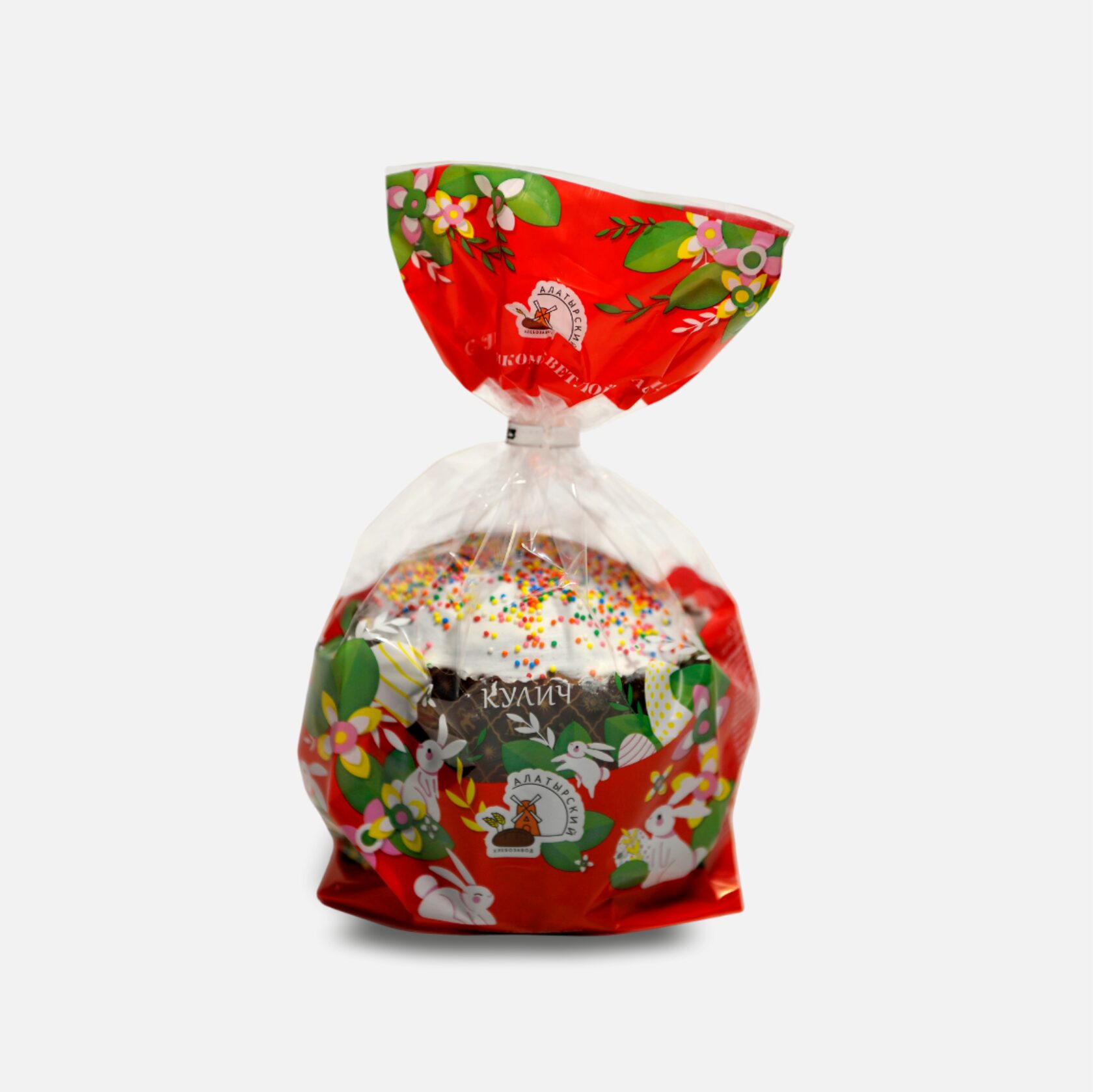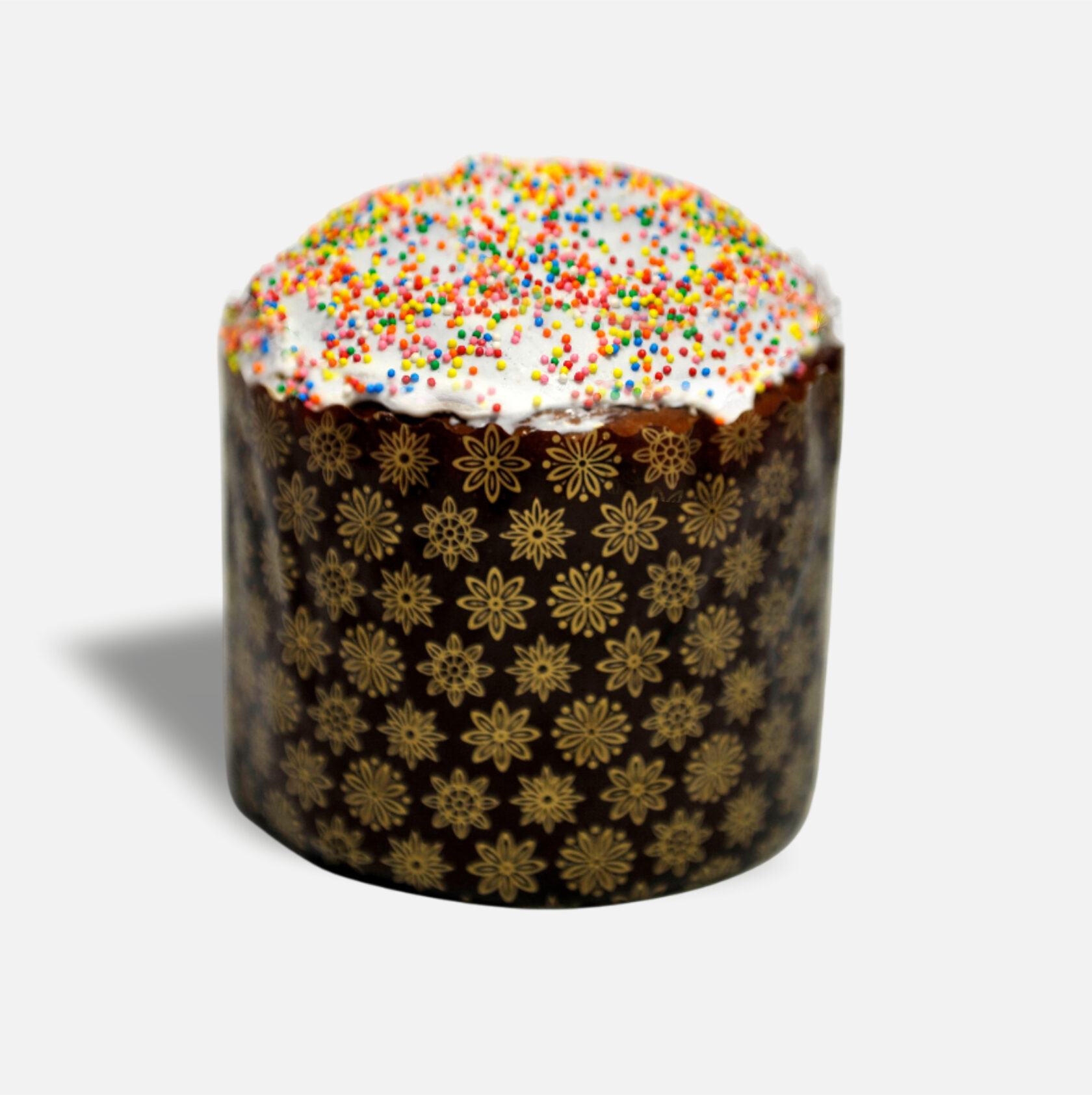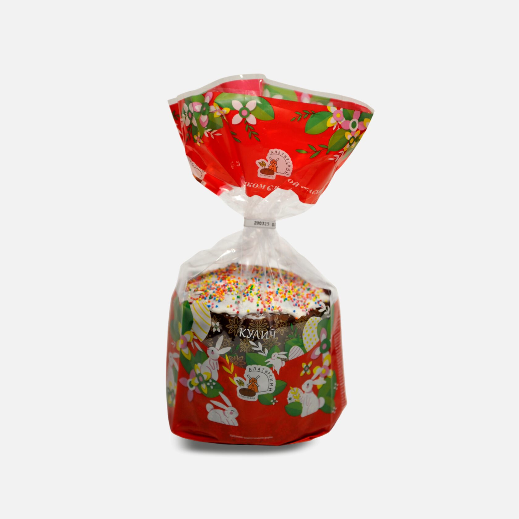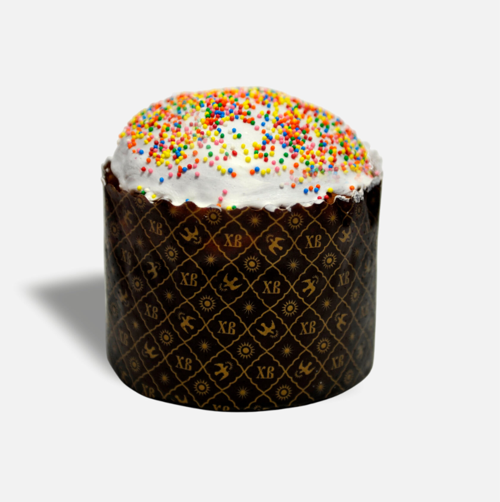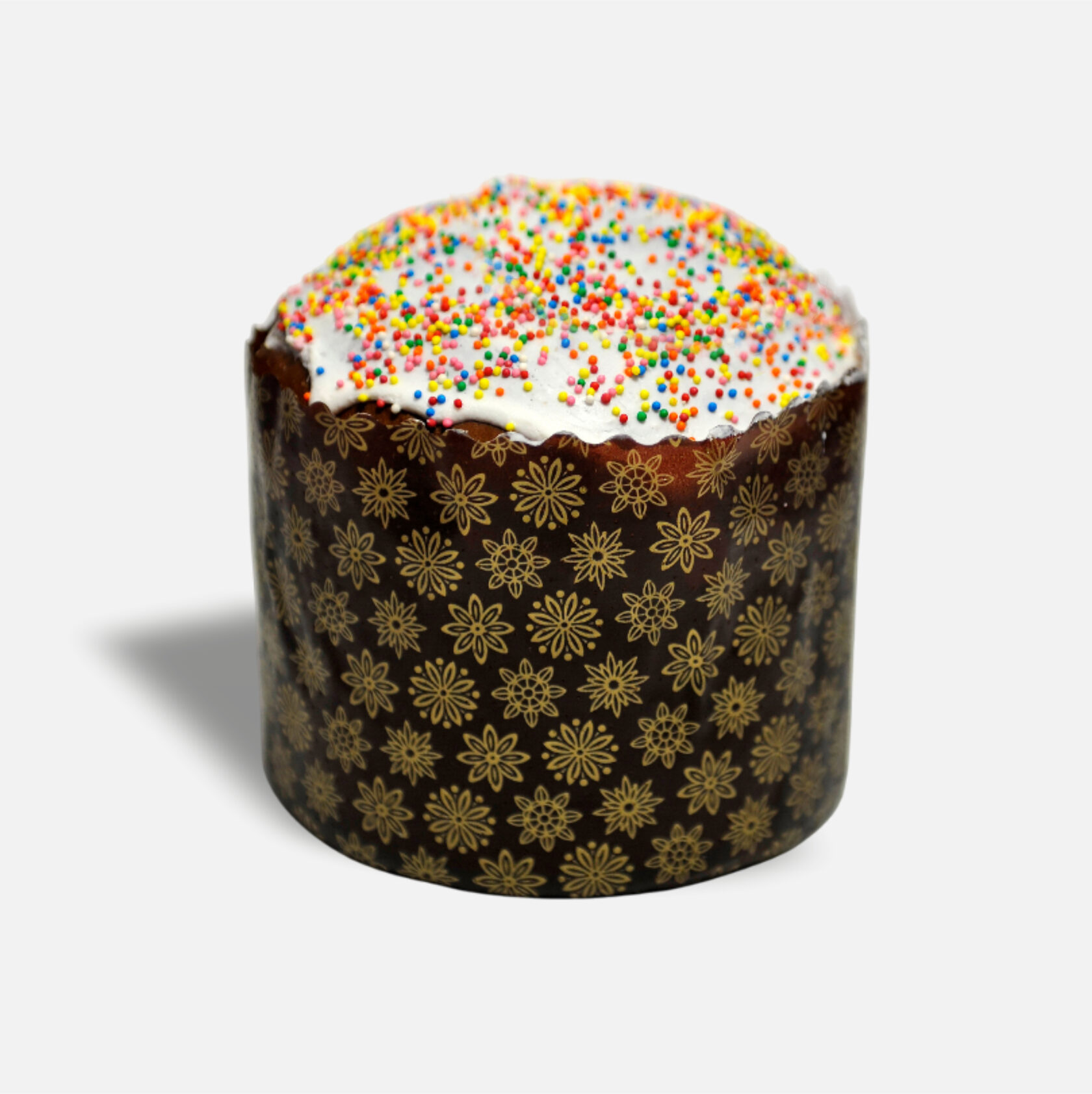 Классический кулич на муке высшего сорта, мягкий и ароматный. Украшен глазурью и посыпкой. Добавление изюма придает естественную сладость и лёгкий фруктовый акцент. Выпекаем ограниченной партией всего раз в год — к празднику Светлой Пасхи.