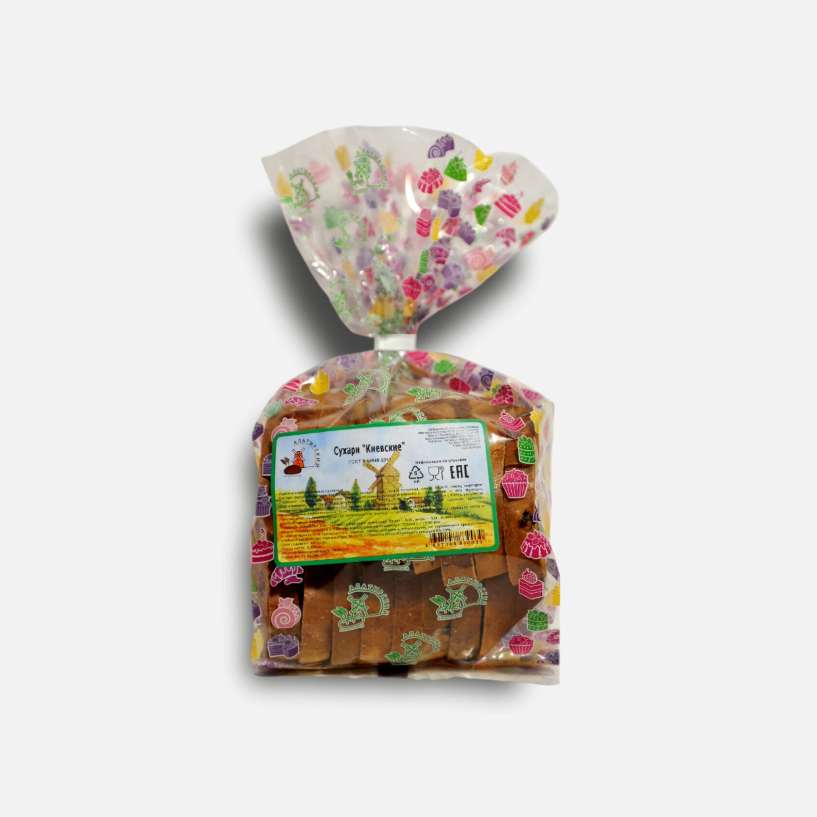 Классические киевские сухари на сдобном тесте с изюмом. Традиционные сдобные сухари приготовлены по ГОСТу. Сначала выпекаем до мягкой золотистой булочки, затем бережно подсушиваем — чтобы получить фирменный хруст. Изюм даёт естественную сладость и лёгкий фруктовый акцент. Идеальны к чаю и кофе.