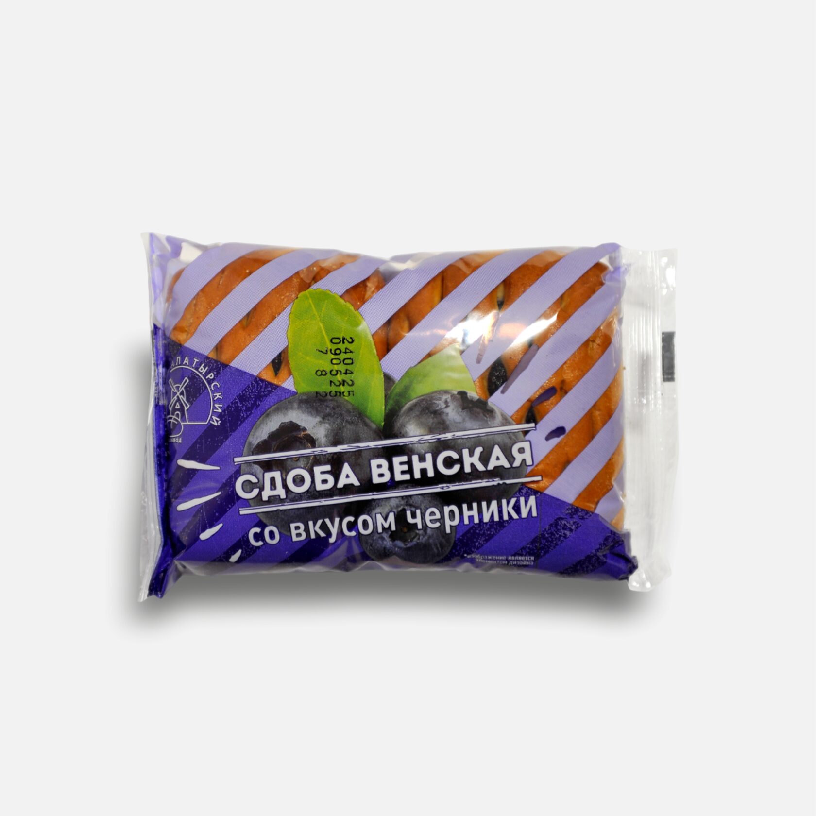 Пышное тесто, приготовленное из пшеничной муки высшего сорта, скрывает начинку с кусочками черники.