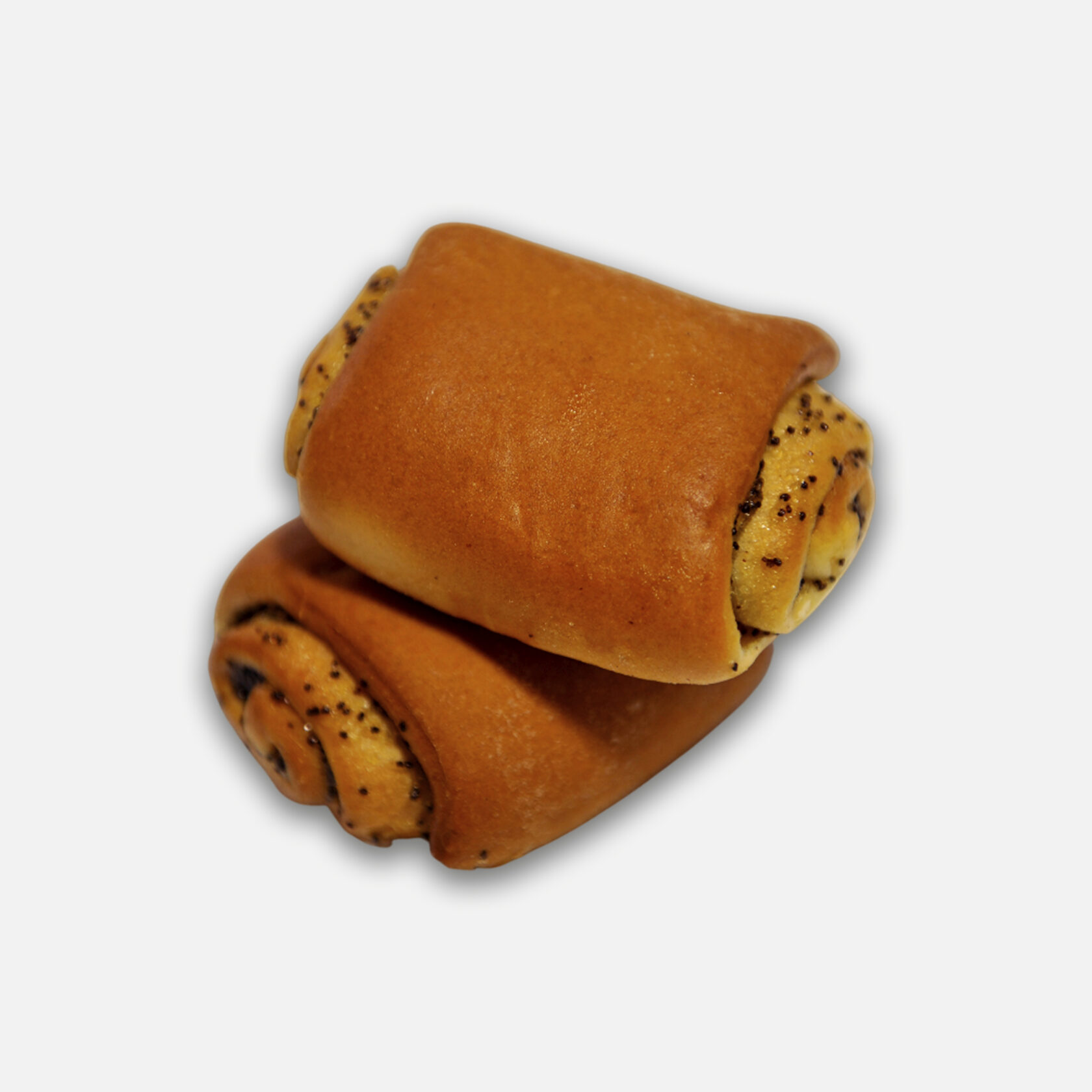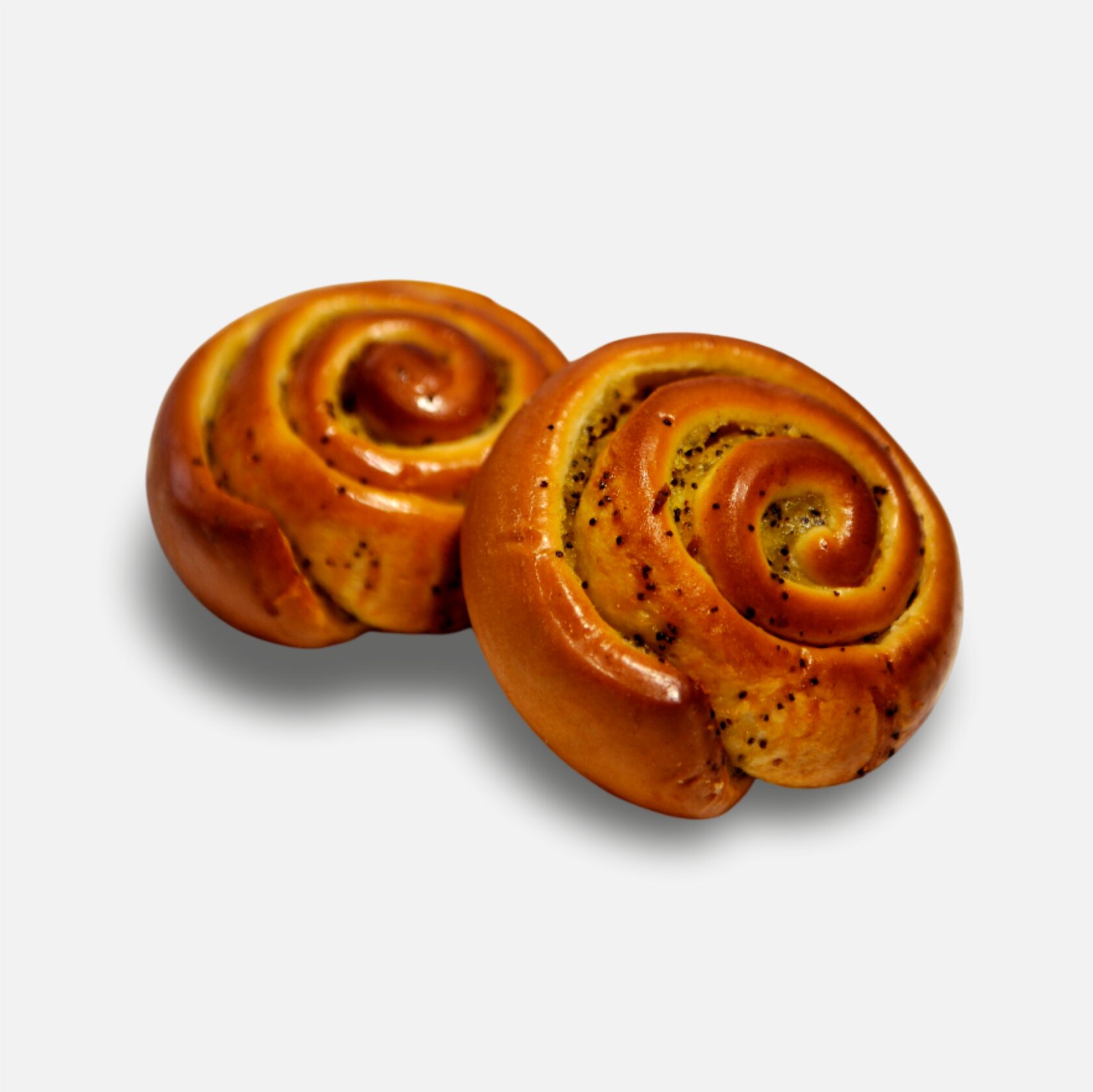 Каждый рулетик приготовлен из пшеничной муки высшего сорта. Лимонная начинка придаёт изделию яркость и освежающую кислинку, а мак добавляет текстуру и глубину аромату.