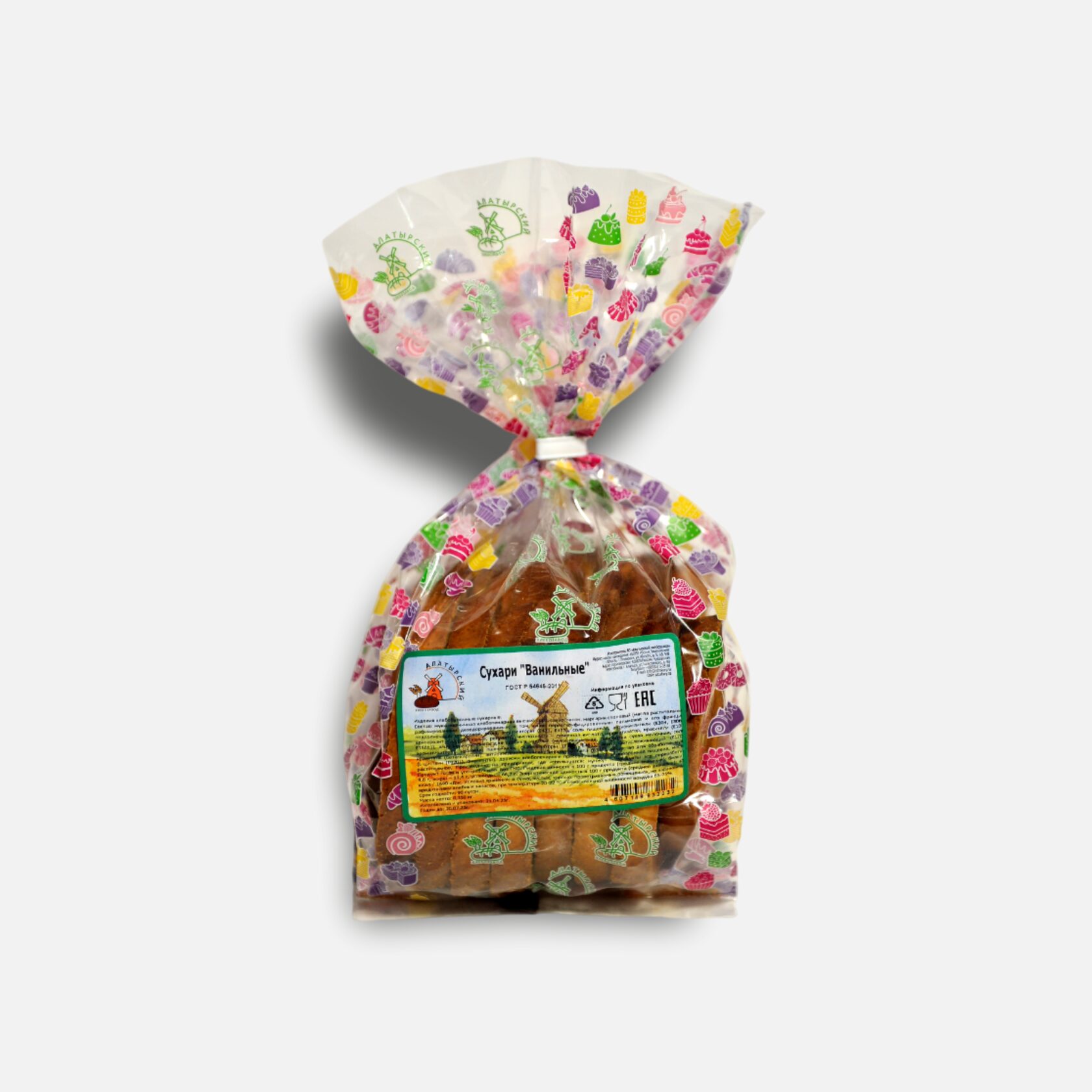 Классические сухари на сдобном тесте, с приятным ароматом ванили. Традиционные сдобные сухари приготовлены по ГОСТу. Сначала выпекаем до мягкой золотистой булочки, затем бережно подсушиваем — чтобы получить фирменный хруст. Идеальны к чаю и кофе.