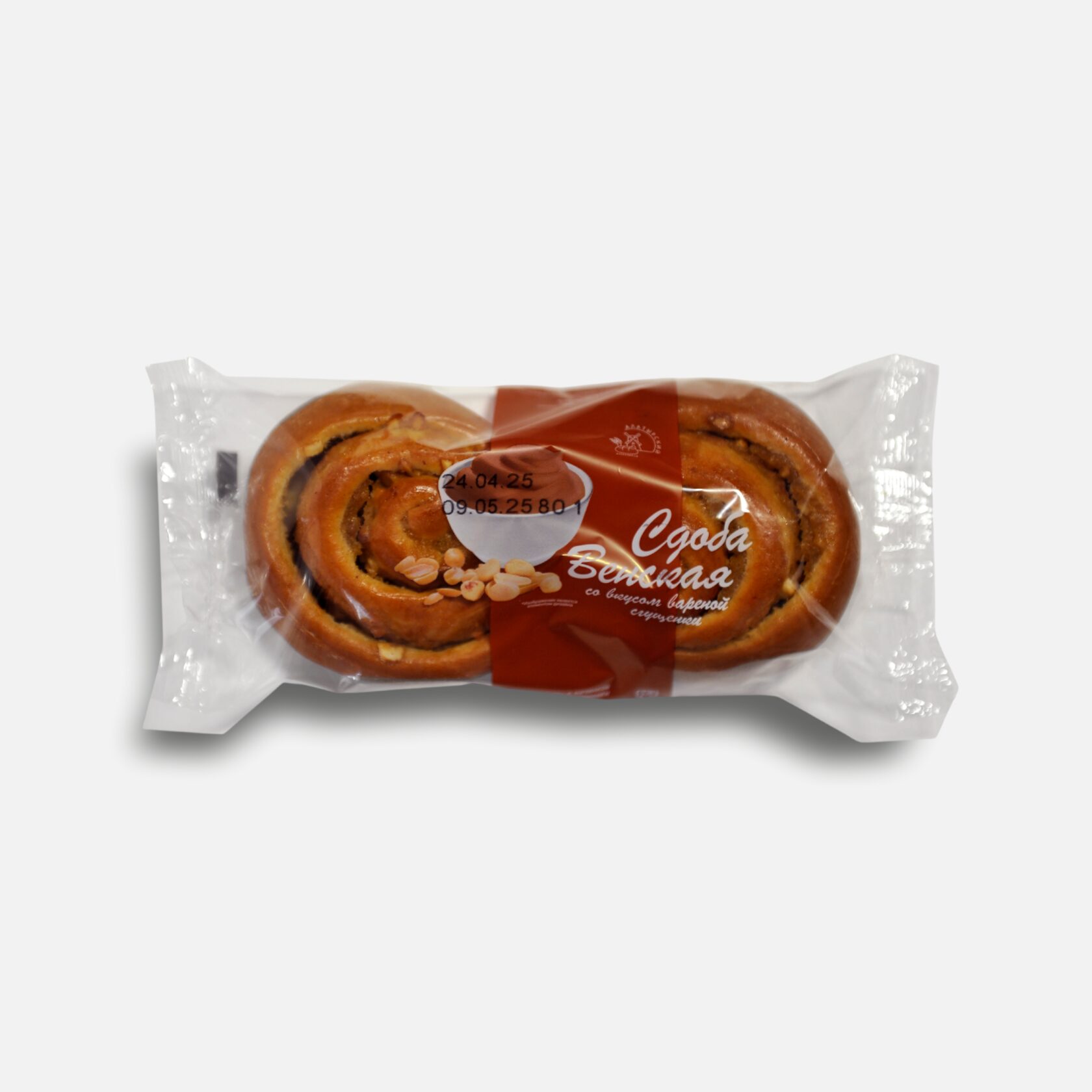 Сдоба готовится из муки высшего сорта, что придает ей легкость и воздушность. С узнаваемым вкусом варёной сгущёнки, орехи придают текстуру и лёгкий хруст.
